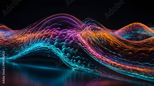 Holographic Neon Fluid Waves. High quality photo
