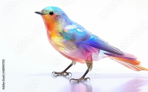 Holographic translucent glass bird, rainbow spectroscopy effect
