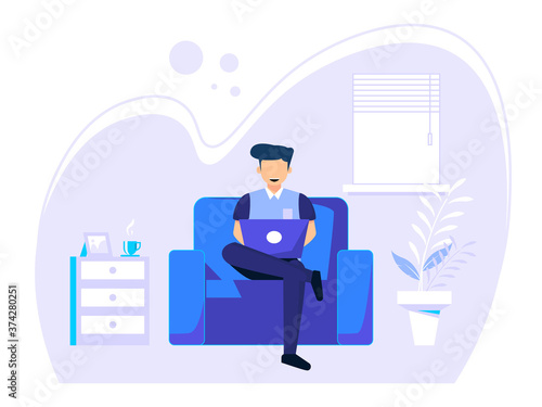 Home office concept, man working from home, student or freelancer. vector illustration in flat style.