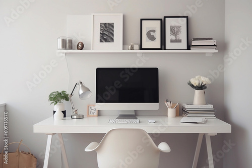 office, home office, room, chair, interior, furniture, desk, apartment, indoor, design, workplace, berlin, style, generative, ai