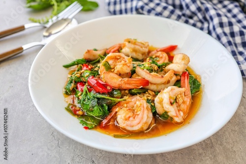 Homemade stir fried Thai basil with shrimp ,pad ka praow kung,