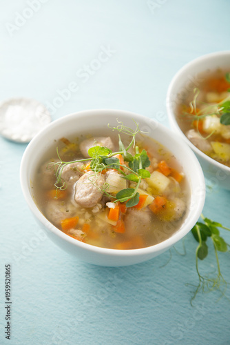 Homemade vegetable soup with meatballs