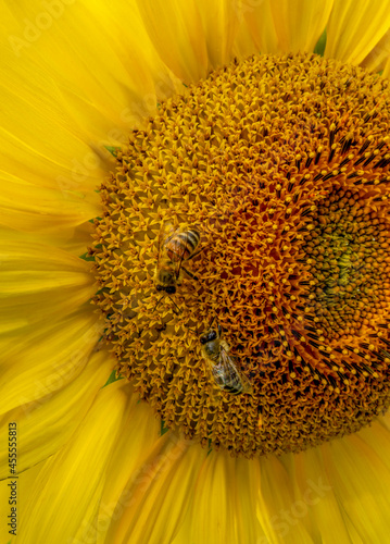 sunflower, bee, honey bee, yellow, flower head, abloom, blossom, nectar, pollination, insect, nature, natural, detail, closeup, eat