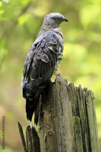 Honey buzzard (Pernis apivorus), adult, perch, vigilant, in summer, Šumava, Czech Republic