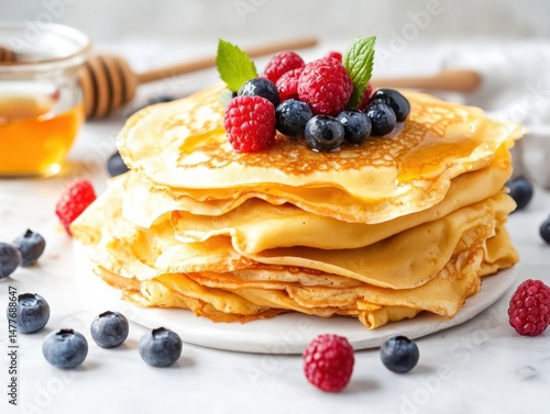 Honey-Drizzled Pancakes with Berries - A Perfect Breakfast