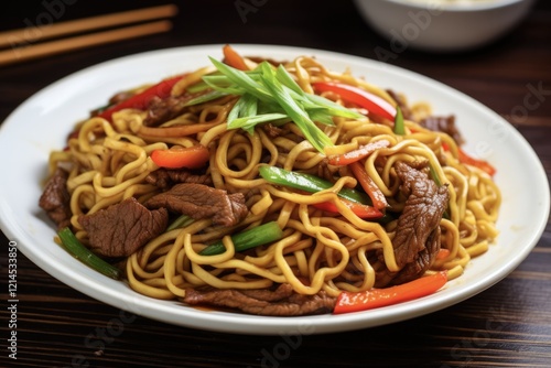 Hong Kong Style Beef Chow Mein - Traditional Chinese Noodles with Beef in a Savory Sauce, Served as a Typical Favourite Regional Dish