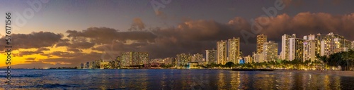 Honolulu at Dusk. The majestic city lights complemented by the golden glow of sunset.