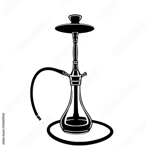 Hookah Silhouette: A bold, black and white line art illustration of a traditional hookah, showcasing its elegant shape and intricate details against a clean white background.