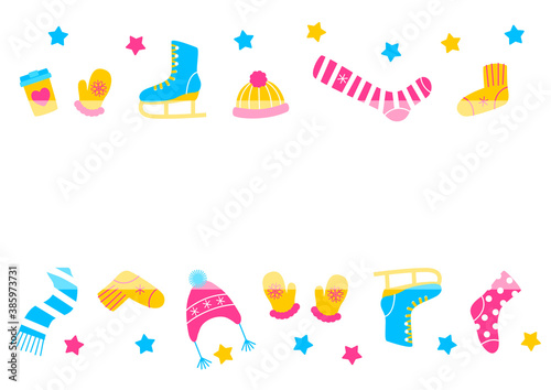 iceskating, border, winter, clothes, accessory, background, skate, isolated, hat, knitted, foulard, sock, sport, stocking, warm, woolen, mitten, cap, cartoon, children, baby, object, colourful, copy space, copy space, cup, cute, decoration, design, drink, element, event, fringe, holiday, horizontal, illustration, striped, vacation, vector, white, dotted