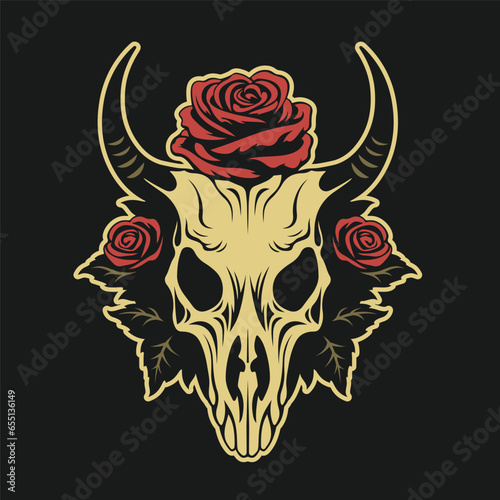 skull, tattoo, old-fashioned, ornate, rose, vintage, decoration, dead, skeleton, bone, horn, animal, head, clip art, sticker, element, design, flower, floral, ethnic, gothic, ornament, cartoon, art, symbol, death, black, graphic, vector, illustration