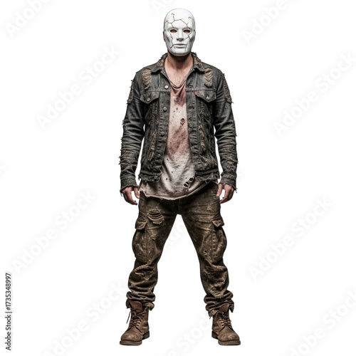 illustration, horror, character, drawing, isolated, white background, mask, halloween, scarey, monster, motion picture, serial killer, art, design, print, t-shirt, full body, jacket