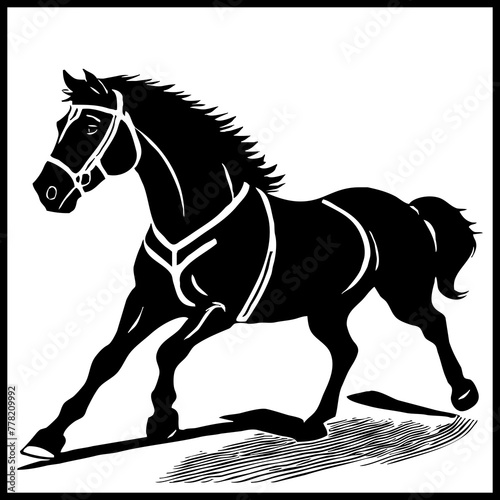 Horse . Black and white animal graphics. Logo design for use in graphics. Print for T-shirts, design for tattoos. Generated by Ai