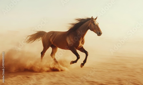 horse, brown, running, gallop, desert, sand, dune, dust, wind, mane, motion, blur, wild, free, nature, animal, equine, freedom, outdoors, landscape, sunset, gold, beautiful, elegant, majestic, powerful, strong, speed, fast, energy