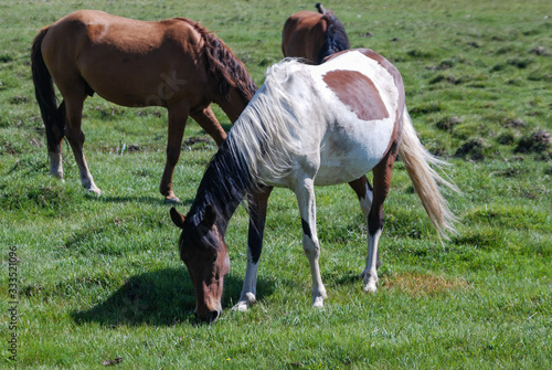 Horses grazing on Kyrgyz steppe, near Songkol lake, Kyrgyzstan.