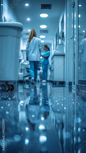 hallway, reflections, atmosphere, sterile, hospital, minimalist, blurry, light, setting, walking, clinic, shiny, health care, floor, room, indoor, medicals, corridor, ambience, interior, interior design, light, space, modern, clean, blue, building, architecture, laboratory, equipment, science, research, water, liquid, technology, glasses, test, chemical, care, health, industry, white, plastic, laboratory, ampoule