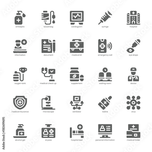 hospital, icon, medicine, ambulance, doctor, patient, care, stethoscope, prescription, pill, insurance, microscope, syringe, health, blood, clinic, health care, science, simplicity, nurse, treatment, surgery, wheelchair, thermometer, cardiogram, diagnostic, first aid, cardiologist, consultation, diagnosis