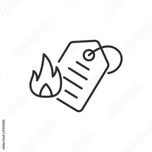 Hot offer or tag with a promotional price icon. High quality black vector illustration..