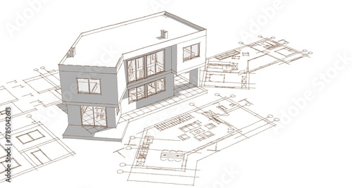 house architectural project sketch 3d illustration