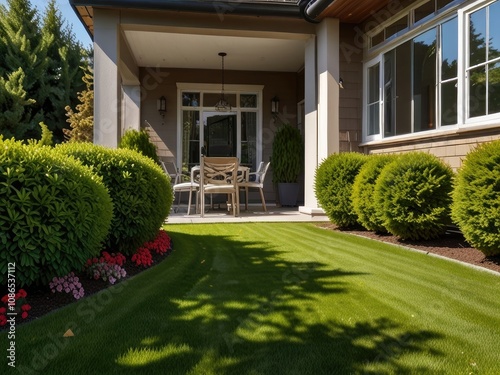 house, home, architecture, exterior, building, family, garden, lawn, estate, tree, roof, residential, front, new, luxury, porch, landscaping, construction, window, brick, grass, real, suburban, entrance, window
