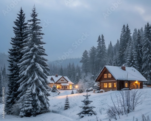 winter, snow, house, landscape, cold, mountain, forest, tree, christmas, cabin, nature, tree, wood, bungalow, ski, wooden, home, white, season, hut, sky, building, holiday, snowy, wood