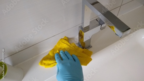 Household - cleaning the bathroom - cleaning - home cleaning - hand with yellow rag