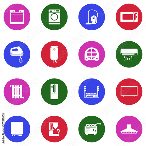 household, appliance, icon, circle, colours, white, boiler, cooker, cooking, cleaner, coffee machine, heater, home, house, audio system, stove, symbol, technology, television, vacuum, vector, washer, oven, refrigerator, air conditioner, bathroom, collection, design, device, dishwasher, domestic, electric, electronic, fryer, illustration, isolated, kitchen, machine, microwave, mixer, modern, object, scale, set, washing, water, signs, flat, graphic