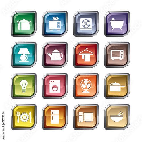 symbol, vector, clip art, buttons, artistic, element, collection, computer graphic, website, icon, computer icon, design, style, idea, decoration, decorate, houseware, cooking, technique, stove, kettle, device, electrical, home, container, utensil, appliance, kitchen, tool, equipment, washing machine, pan, pot, refrigerator, toaster, computer, bowl, monitor, fan, bulb, clothes, lamp, television, knife, bread, hanger