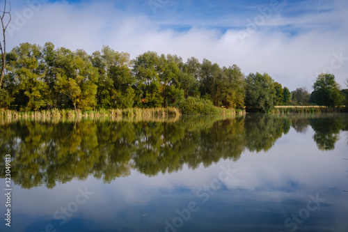 Hrase pond lake in summer morning