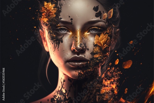ai, woman, hair, beauty, face, automaton, hybrid, artificial, portrait, close-up view, glamour, make-up, artistic, cyborg, person, lip, mask, people, elegant, elegance, brunette, model, fashion, generous, luxury, fashion show, unique, liked
