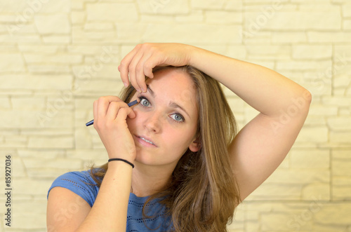 eyeshadow, eyeliner, make-up, cosmetic, appearance, woman, young, application, blue-eyed, brunette, outline, improvement, eye, face, fashion, femininity, girl, gloss, care, pretty, wc