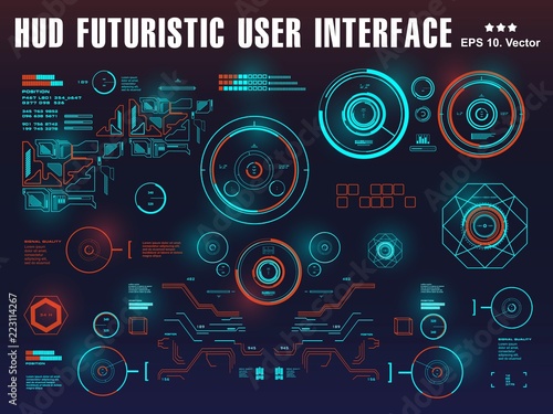 Hud interface dashboard, virtual reality interface, futuristic virtual graphic touch user interface, target
