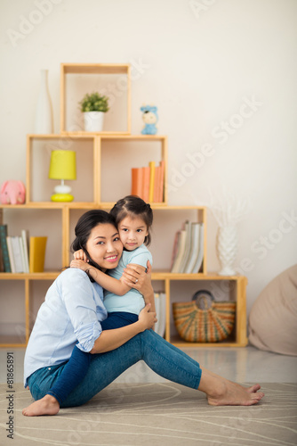 asian, vietnamese, woman, girl, little, happy, joyful, mother, daughter, eltern, floor, portrait, sitting, hugging, embracing, home, room, barefoot beach, love, care, children, children, cute, people