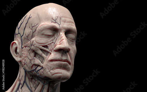Human anatomy - muscle anatomy of the face and neck in 3d render