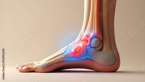 Human Ankle Joint Anatomy 3D Illustration with Inflammation