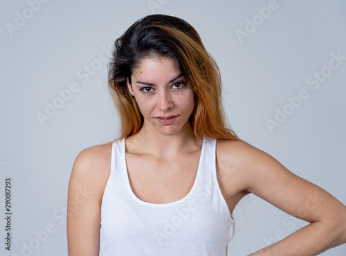 Human expressions and emotions. Desperate young attractive woman with angry face looking furious