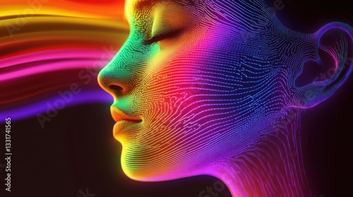 identity, technology, artificial intelligence, human face, colours, pattern, digital artwork, expression, merging, creativity, rainbow, sex, diversity, representation, innovation, artistry, optical, culture, acceptance, face, design, celebration, emotion, wave, transformation, feminine, abstract, aesthetic, light, energy, feature, multimedia, fusion, beauty, spectrum, harmony, individuality
