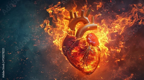 human heart, burning in a striking fire, symbolizing passion generative ai