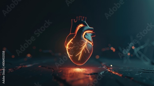 Human heart with cardio pulse line on dark background, Concept of healthcare and cardiology. Ai Generated