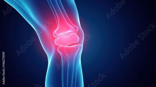 knee, joint, pain, inflammation, anatomy, leg, human, body, medicals, health care, illustration, diagram, bone, muscle, cartilage, red, blue, semitransparent, digital, three-dimensional, rendering, x-ray, health, injury, disease, treatment, therapy, recovery, science, education, vector, isolated, background, graphic, medicine, skeletal, system