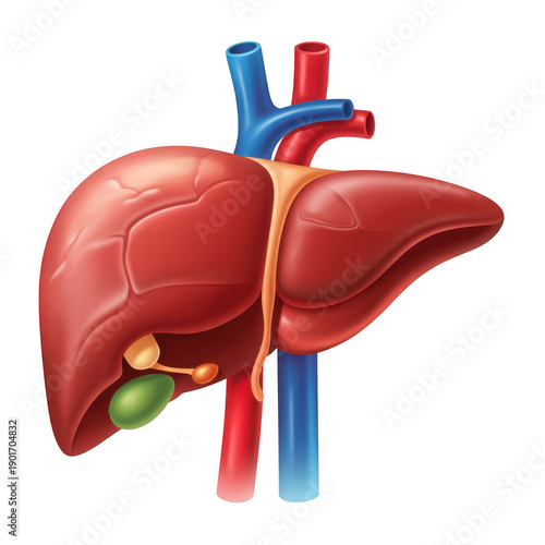 Human Liver with Vessels and Gallbladder liver anatomy isolated on a transparent background