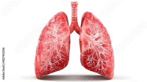 Human Lungs Anatomy Isolated on White Background, Detailed 3D Illustration of Respiratory System.