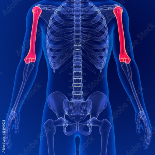 Human skeleton anatomy Humerus Bone 3D Rendering For Medical Concept