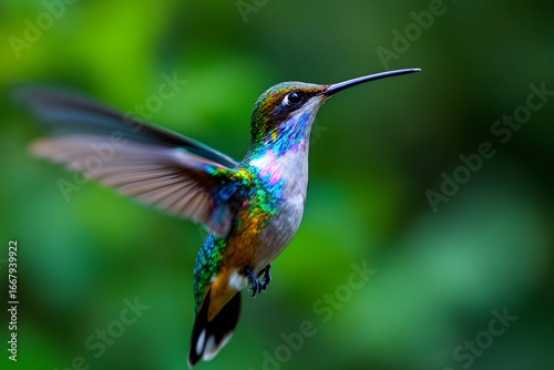 hummingbird, bird, flying, flight, tropical, rainforest, nature, wildlife, animal, avian, feather, iridescent, colourful, plumage, wing, motion, blur, green, background, closeup, macro, detail, beauty, graceful, elegant, exotic, precious, gem, small, fast, speed, agile, conservation, biodiversity, environment, ecology, portrait, wild, ecuador, colombia, costa rica, panama, south america, central america, eye, beak, wingspan