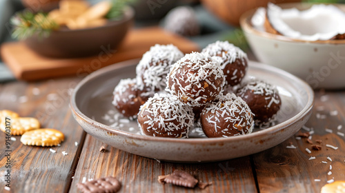 hungarian kókuszgolyó coconut ballst with cocoa biscuit powder rum covereb with coconut