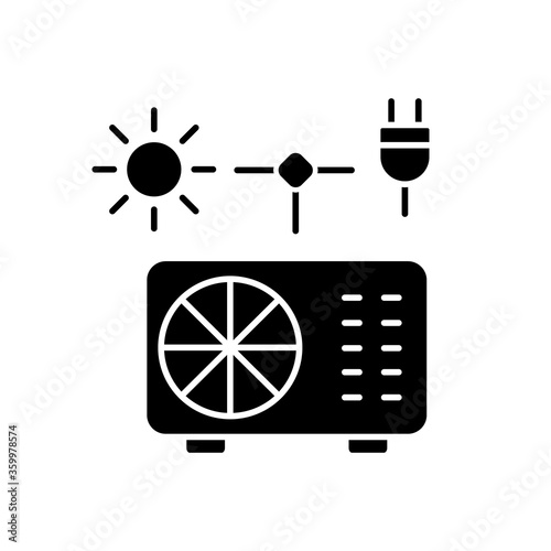 Hybrid air conditioner black glyph icon. Domestic conditioning and heating system silhouette symbol on white space. Intelligent ventilation. Smart AC for all seasons vector isolated illustration