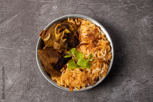 Hydrabadi Dum mutton Biriyani served in dish isolated on background top view of bangladesh food