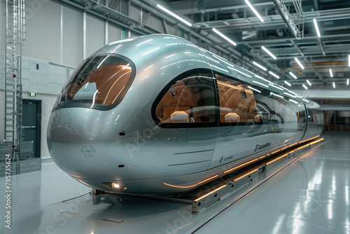 Hyperloop transportation system prototype in a futuristic technology testing facility