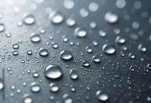 water droplets, macro, metallic, surface, closeup, texture, smooth, shiny, abstract