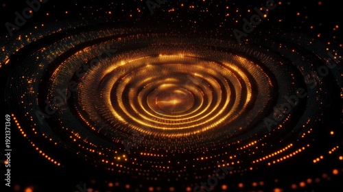vortex, dot, luminescent, dark background, abstract, futuristic, digital, energy, sparkle, shimmer, motion, rotation, tunnel, portal, hypnotic, mesmerizing, radiant, bokeh, orbital, wave, technology, three-dimensional, depth, layer, pattern, symmetry, glow, gold, electric, luminance, science fiction, cosmic, ambient, atmospheric, illustration, animation