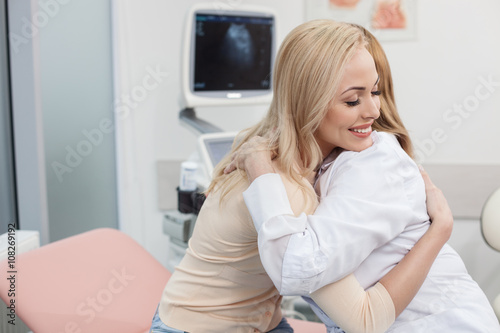 doctor, hospital, medicals, embracing, female, woman, patient, sitting, smiling, gynaecologist, care, caucasian, family, expectant, specialist, beautiful, health care, mother, practitioner, room, hug, pregnant, expecting, pregnancy, motherhood, exam, indoor, cheerful, girl, recovery, clinic, examining, human relationships, consultation, antenatal, tenderness, men at work, general, healthy, hugging, love, check-up, health, consulting, happiness, young, thankful, nurse, friendly, lady